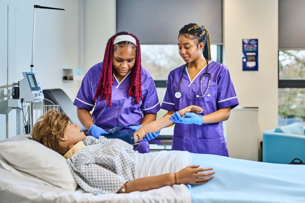 Healthcare students working on patient